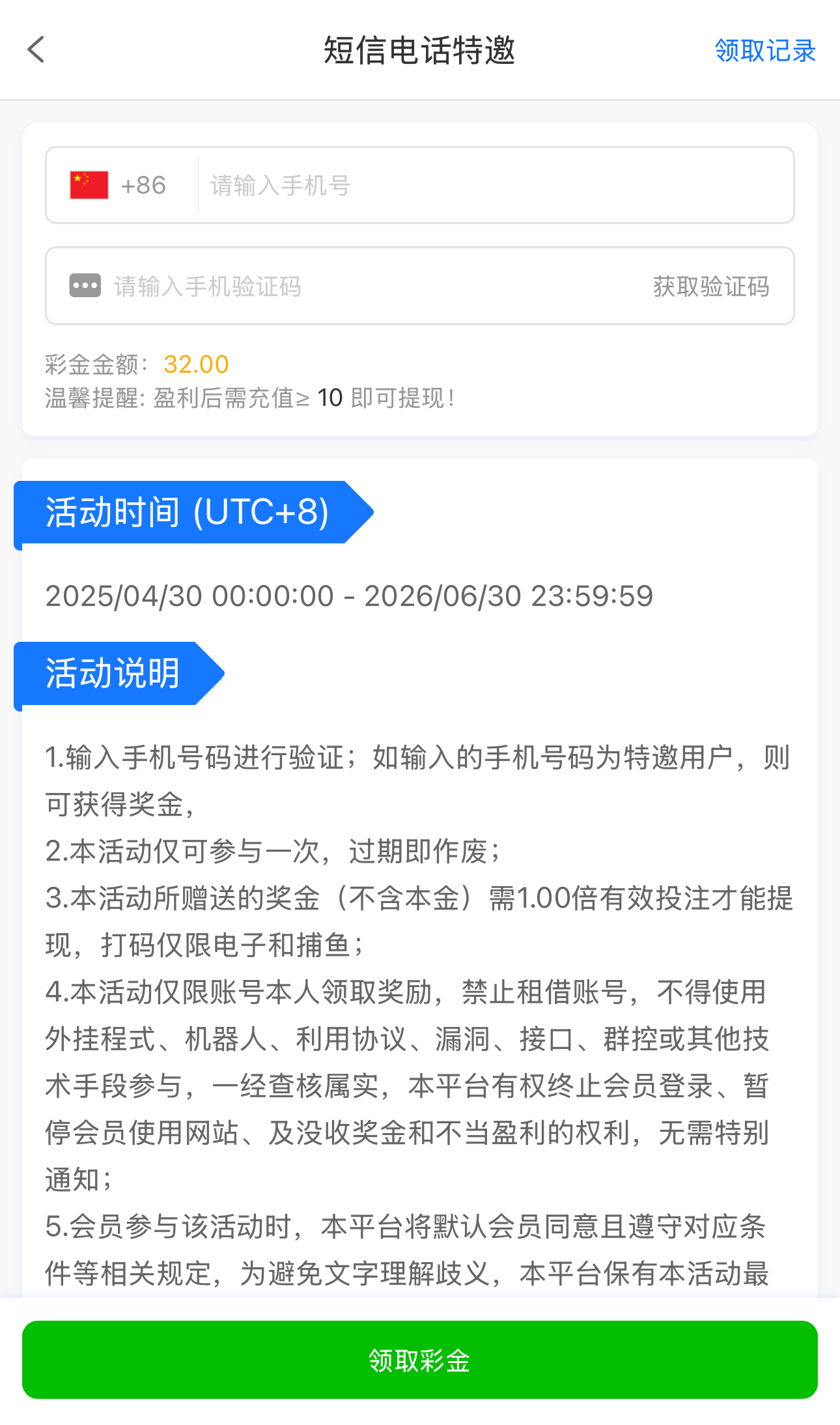 碰瓷特邀,新用户注册优惠大厅自助验证手机号